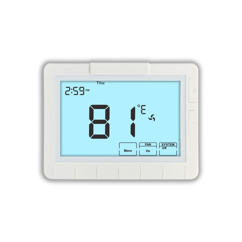 Termostatın geleneksel uygulama türü, standart HVAC sistemlerini destekler, bu da mevcut bir çok ısıtma ve soğutma kurulumuna uyumludur.Bu esneklik, okullar gibi çeşitli senaryolarda kullanılmasını sağlar., hastaneler, oteller ve perakende mağazaları, konukların konforu ve operasyonel verimliliği için hassas oda sıcaklığını korumak çok önemlidir.